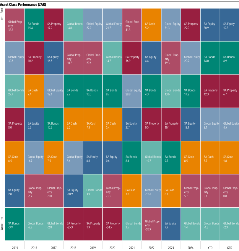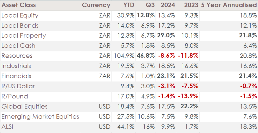 South African equities benefited from these trends, with the asset class topping the pop charts over the past quarter and year-to-date.