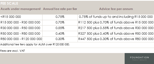 Because we offer a personalised, holistic service, we apply an annual minimum fee of R50 000 incl. VAT.